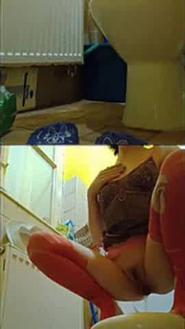 My Stepmother in Very Sexy Red Silk Panties Pissing in the Shower