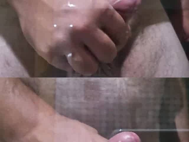 Cumming on the glass wall