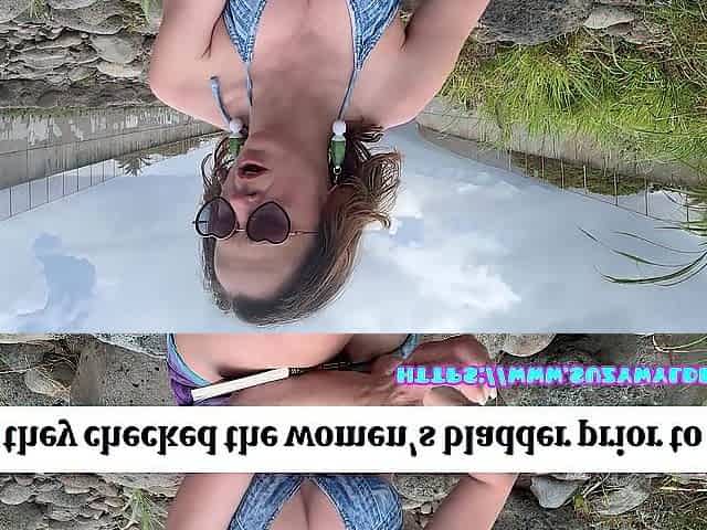 Story #5. French Porn Star Lilly with Glasses Takes a Golden Shower, Sucks a Big Dick, Has Urine and Blows Bubbles in a Park