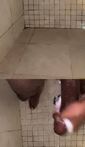 Excited black cum in shower