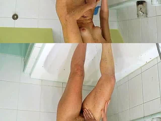 Russian 18-Year-Old Brunette Girl Plays in the Shower