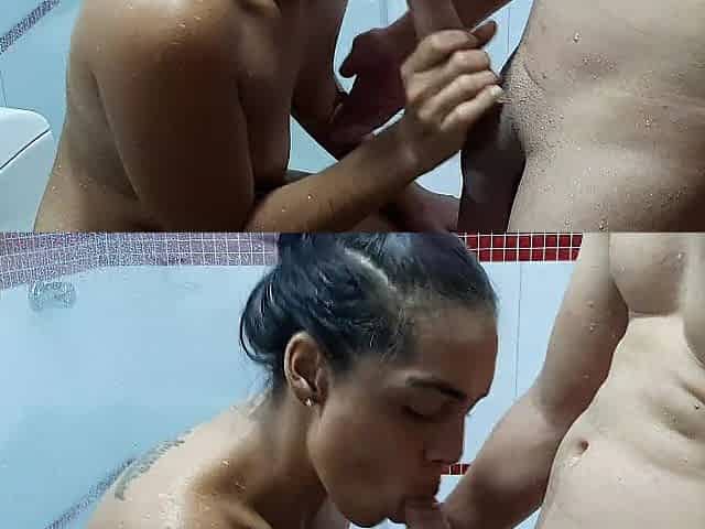 A rich shower with my stepcousin's horny. Part 2. I love how she sucks my cock