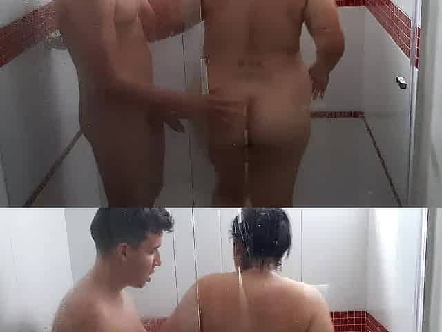 After Good Shower Sex and Blowjob in the Bathroom He Allow His Big Dick Friend to Join in a Threesome Fun Sex Hardcore