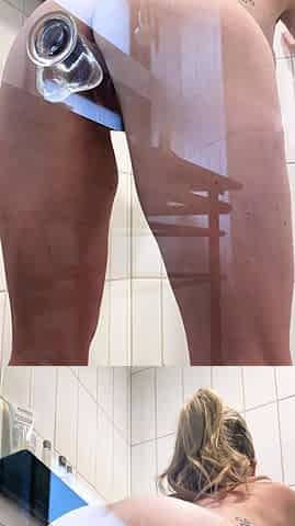 MILF blonde live toys webcam show in shower