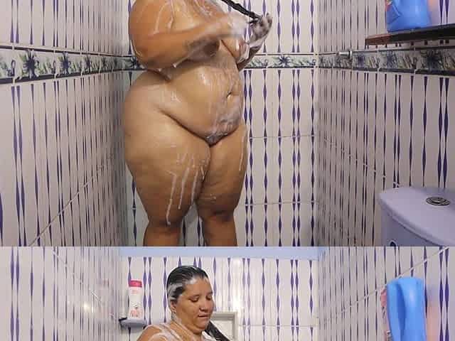Amateur BBW Big Tits Homemade Wife in Shower (mature MILF Saggy Tits Cheat Hotwife Aunt Private PAWG Ass GILF Hairy Pussy)