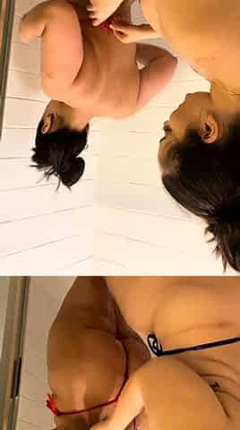 Curvy Large Booty Ebony Lesbo Pair Shower Jointly & Lick Twat Sloppy