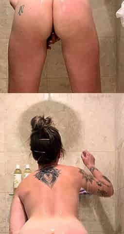 Amateur teen showers with her awesome donk, impressive XXX.