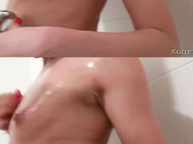 Hot Shower Beautiful Busty Woman in the Shower Masturbates Watching a Couple Fucking