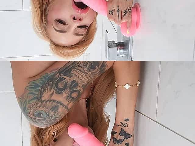 Good looking Scarlette with hot ass sucking her pink dildo