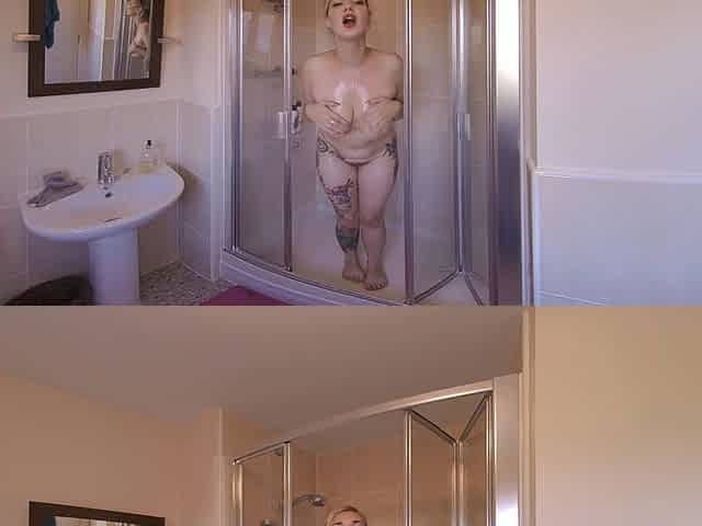 Awesome Big Boobs Blonde Masturbates In The Shower