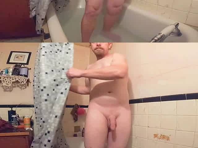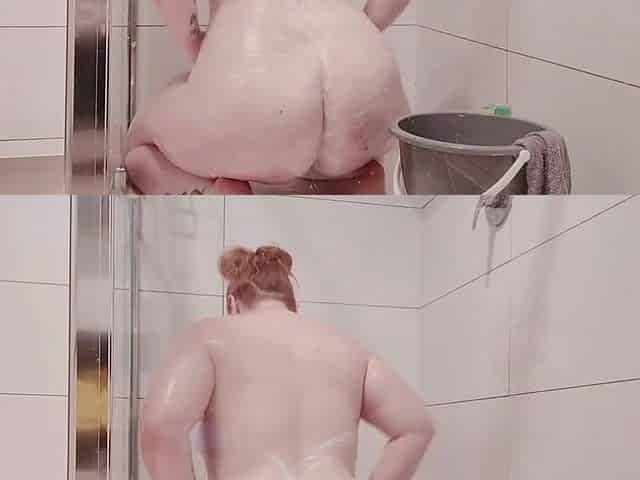Overweight red head has to bathe from a bucket cuz her sexy water broke