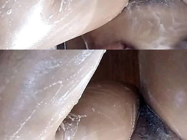 Stepdaughter pleasured by stepmom with a large double dildo and gets a golden shower!