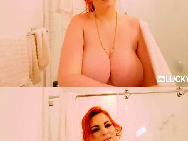Join this big tit mature for a hot, wet shower in stockings