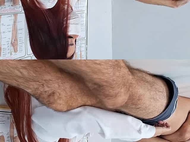 A shy but giant-cocked guy comes to a doctor, when she see his big cock she get wet