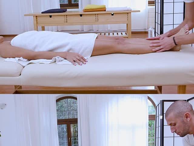 Cute and shy Veronica Leal gets a massage with balls deep sex