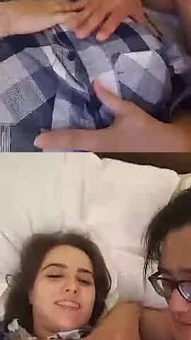 Shy slut with big tits in bed with a guy