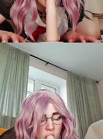 "Shy maid found interesting toy on the floor and decided to ride it :P"