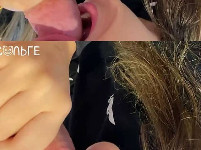 Shy Teen with Long Tongue receives huge Cumshot on her Tongue