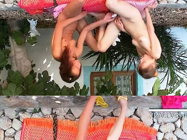 Natasha Shy and lesbo GF kissing and masturbating outdoor