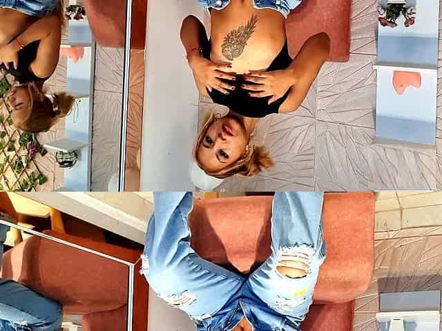 Shy Teen Rubs Her Clit on the Table! While Watching Her Own Sextape