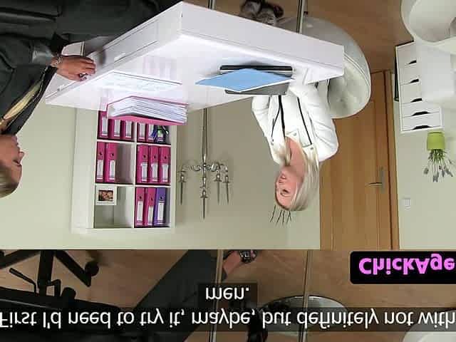 Lesbo Agent Fucks Shy Blondie With Dildo