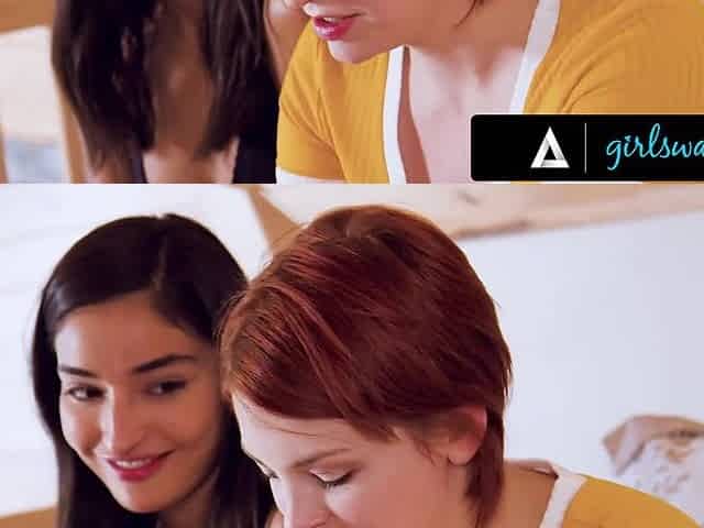 GIRLSWAY - Sexy Emily Willis Has Her Pussy Eaten After She Caught Shy Redhead Bestie Masturbating