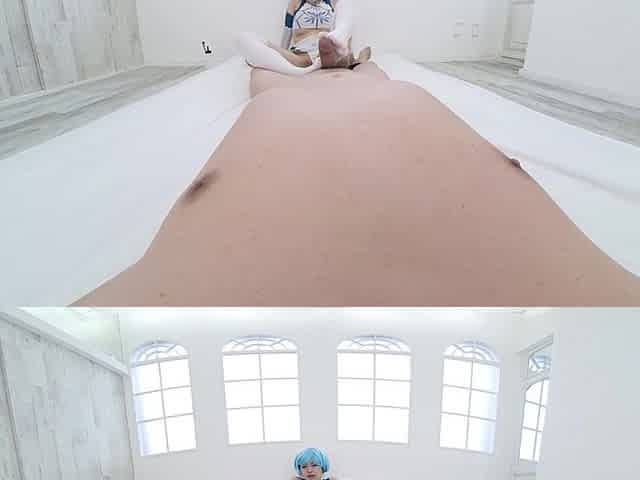Beautiful busty brunette Rio Lee is enjoying sucking a massive white cock
