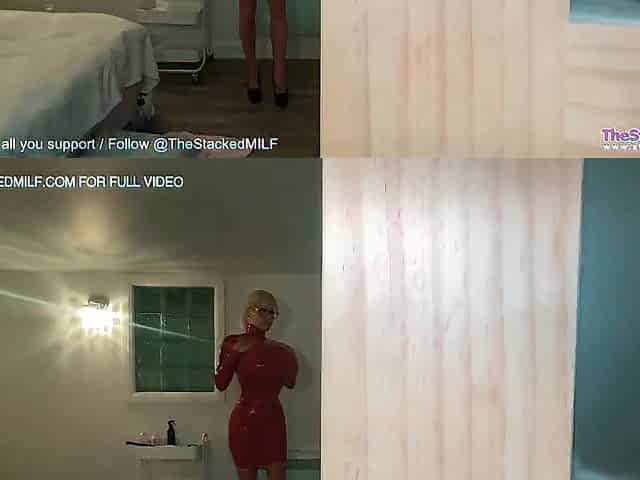 Blonde milf Sarah Taylor gets her pussy railed after teasing with her big fake tits.