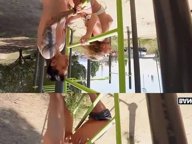 Femboy G cup (fake melons) randomly positions outside