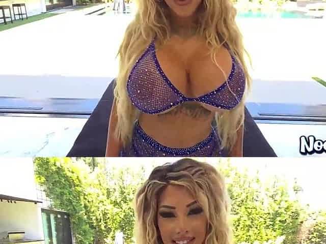 FFM hard fuck with a silicone tits blonde babe Angela Attison