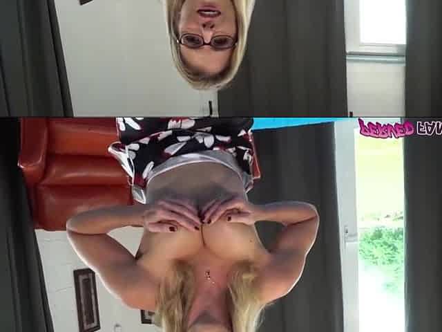 Chesty blond cougar Lauren Pixie helps her wild mischievous sonnie to release the sexual tension