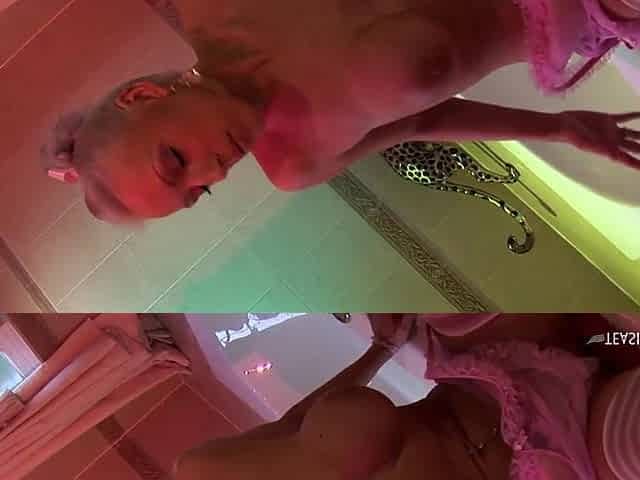 Breasty blond gals playing with a hard shlong in the bathtub