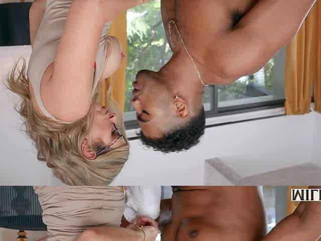 Hot milf indulges in a naughty threesome sex with a black and a white guys with big cocks