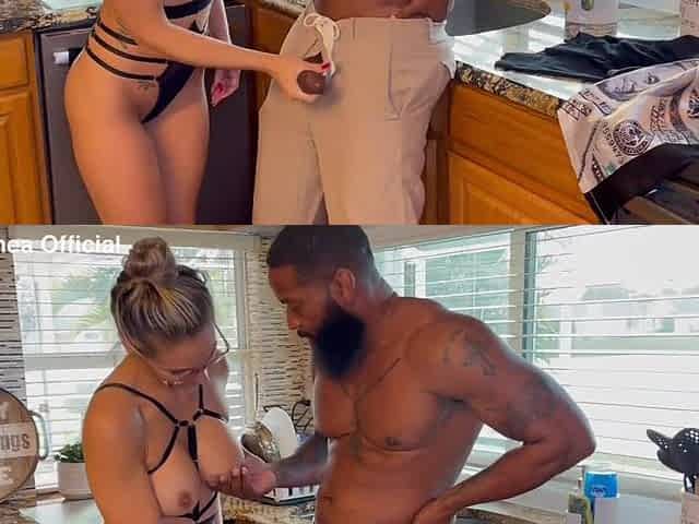 Raquel Devine sucking her hubby's fat cock before being fucked