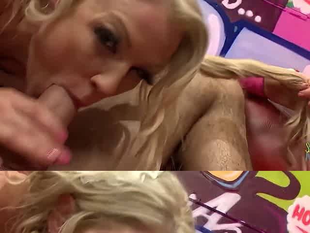 The New Model Gives The Blonde Milfs With Fake Boobs A Facial After Their Threesome