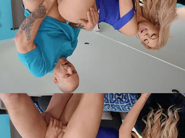 Blonde with silicone tits Luna Stern plays with her girlfriend