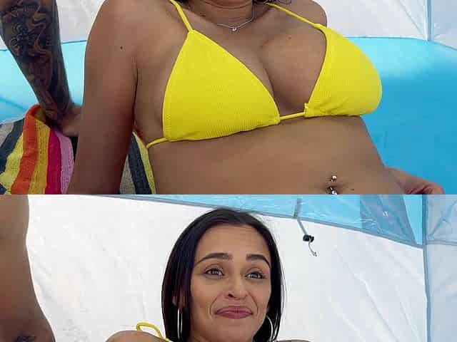 Rough dicking on the beach with a hot brunette - Armani Black