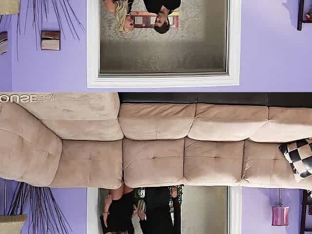 Interracial fucking with fake tits housewife Lilly James on the sofa
