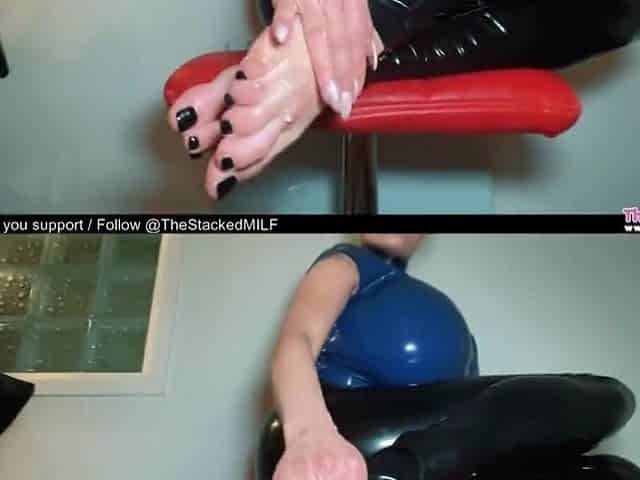 Step-mamma use her feet for a footjob, large jizz flow on toes!