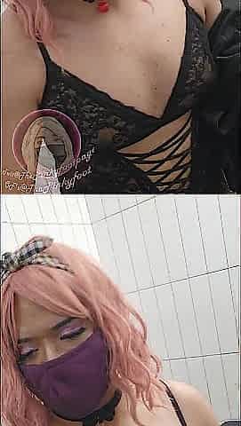 Femboy plays with toys.