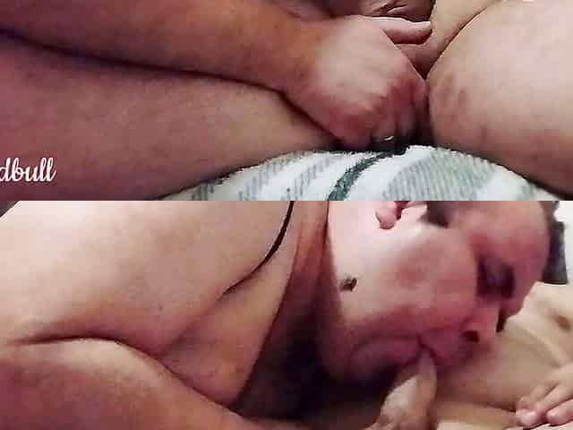 Licking my clit with a big toy deep in my booty!