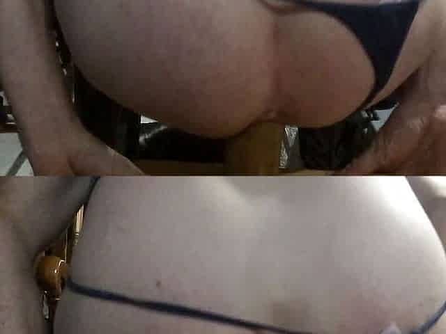 Lucy Essex CD toying my ass with spocks cock dildo on the kitchen table whilst locked in chastity