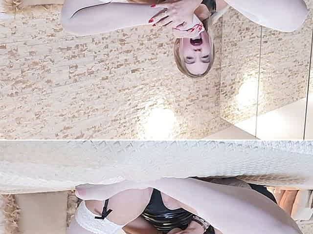 Sissy Elise worships cock in front of the mirror