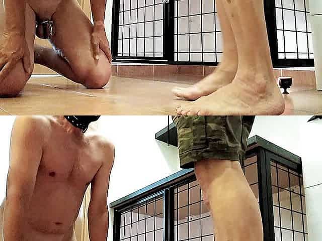 Sissy masturbates his hard cock showing his feet - uekhui