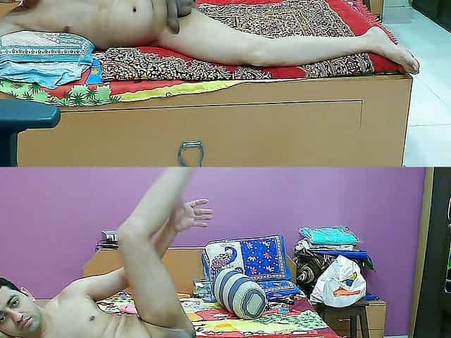 Cute boy facing the mirror showing you his privates
