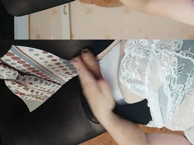 Sissy Trap bangs her butt to the beat and cums after sounding.