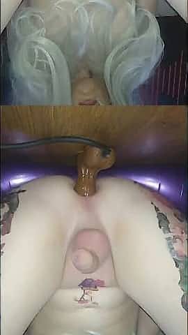 2 large dildos gaping my sissy asscunt