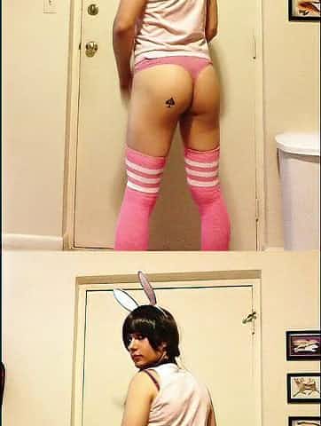 Sissy in fishnets screwing bitch doggy style