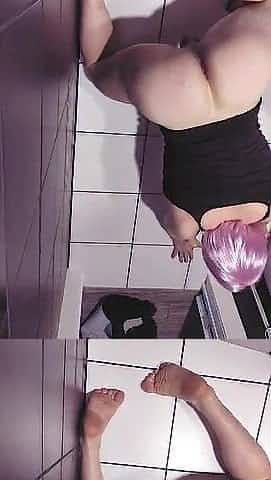 Sissy masturbating in washroom wanking petite schlong like a floozy