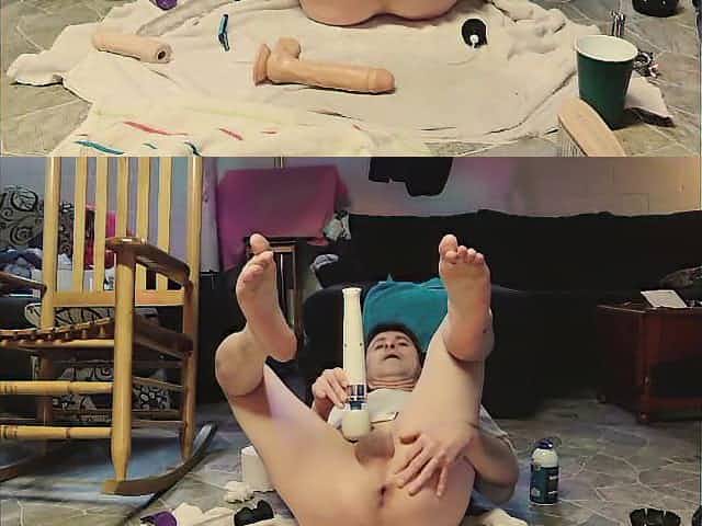 Sissy Takes 12 Inch Bad Dragon Sex-Toy Gapes and Puts Jock in Booty the Cums on Booty